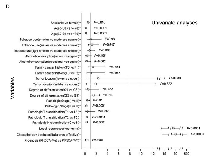 34. Hou J, Jiang D, Zhang J, Gavine PR, Xu S, Liu Y, Xu C, Huang J, Tan Y, Wang H, Lu Y, Zheng L, Hou Y, et al. Frequency, characterization, and prognostic analysis of PIK3CA gene mutations in Chinese esophageal squamous cell carcinoma. Human pathology. 2014; 45:352-358.
