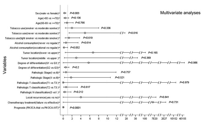 33. Shigaki H, Baba Y, Watanabe M, Murata A, Ishimoto T, Iwatsuki M, Iwagami S, Nosho KBaba H. PIK3CA mutation is associated with a favorable prognosis among patients with curatively resected esophageal squamous cell carcinoma. Clinical cancer research. 2013; 19:2451-2459.