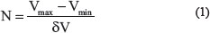 The probability that the value falls into the i-th bin of size δV is computed as: