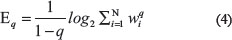 Starting with the moment of order q (not necessarily an integer) of the probability wi, the Renyi entropy is: