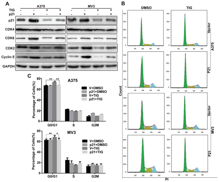 Overexpression of p21 rescued tigecycline-induced cell growth and proliferation inhibition in human melanoma cells