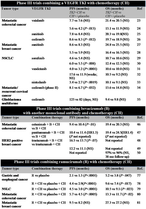 Table 1: Results from phase III trials combining antiangiogenic therapy with chemotherapy or monoclonal antibodies