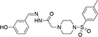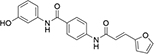 The X-ray structure of CD147 (PDB: 3B5H) was used as the molecular model for our studies. Because the pockets in dimerization interface are deeply enough to bind small molecules and CD147 dimerization plays an essential role in tumor progression, as mentioned earlier, we chose the dimerization interface of CD147 to construct a pharmacophore model. The search area for screening was restricted to the C2 domain of the CD147 monomer (Figure 1A). Over 300,000 compounds from the Specs database were screened in silico. A total of 100 compounds were selected for biological testing after several rounds of screening (Figure 1B). Using SPR assay, the binding of 100 selected compounds to CD147 was evaluated through value of Response Units (RU) and top five compounds (RU > 20) were obtained (Figure 1C). Meanwhile, using gelatin zymography experiments, the effect of compounds on suppressing MMP-2 secretion was examined and 7 candidate compounds (inhibition ratio of > 30%) were obtained (Figure 1D). Notably, we got one compound dubbed AC-73 (Figure 1E), that presented both high RU and high effect to suppress MMP-2 secretion (Table 1).