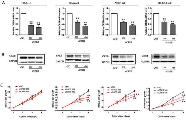 Decreased expression of CREB suppresses RCC cell growth