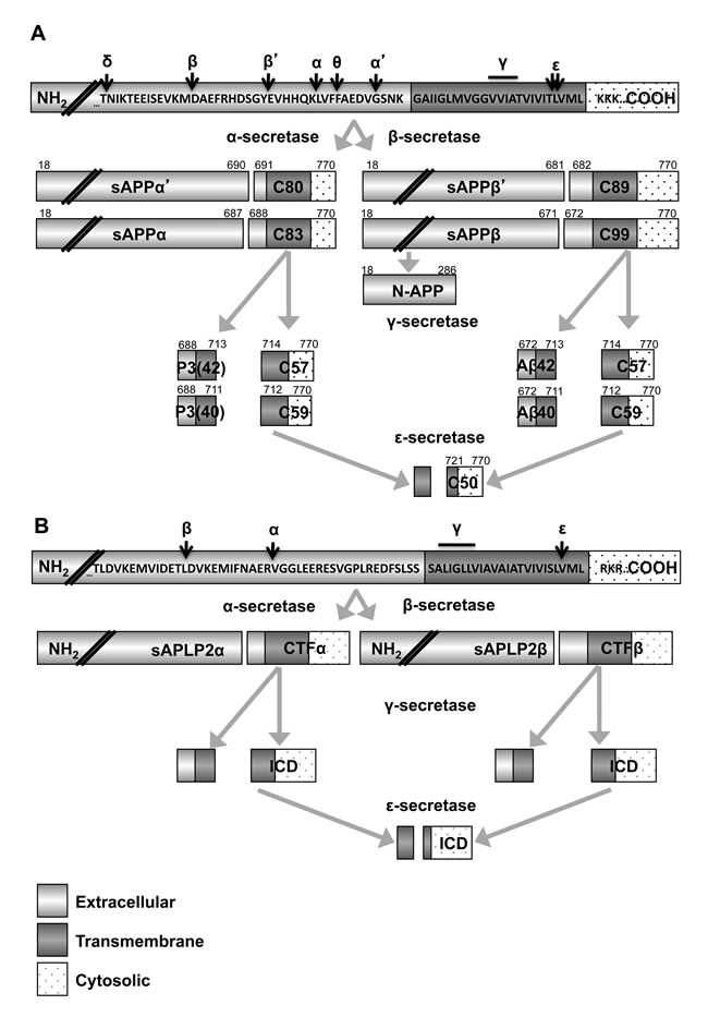 32. Eggert S, Paliga K, Soba P, Evin G, Masters CL, Weidemann A, Beyreuther K. The proteolytic processing of the amyloid precursor protein gene family members APLP-1 and APLP-2 involves α-, β-, γ-, and ε-like cleavages. J Biol Chem. 2004; 279: 18146-18156.