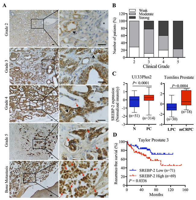 Overexpression of SREBP-2 is associated with human PCa progression and poor clinical outcomes