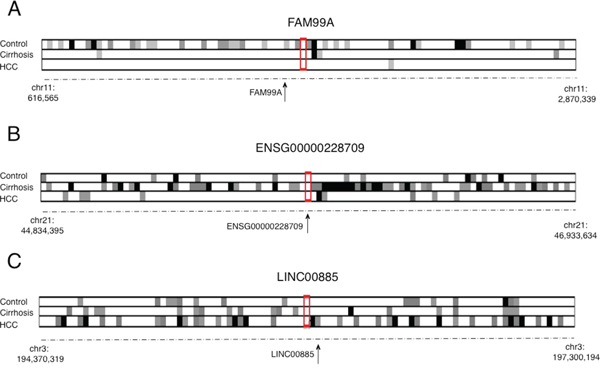 In this study, we aimed to identify lncRNA expressed in HCC, cirrhotic and normal liver tissues using RNA-sequencing (RNA-Seq) and to infer their potential impact on gene transcription control and signalling pathways relevant to human hepatocarcinogenesis.