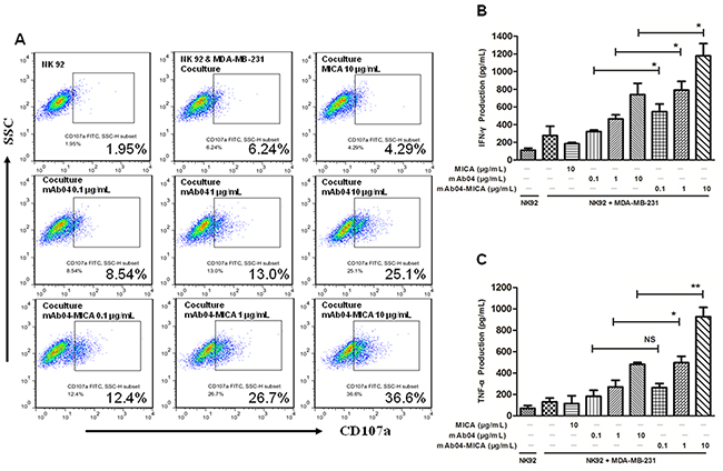 mAb04-MICA increased NK92 cells degranulation and cytokine production
