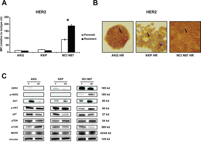 42. Zuo Q, Liu J, Zhang J, Wu M, Guo L, Liao W. Development of trastuzumab-resistant human gastric carcinoma cell lines and mechanisms of drug resistance. Scientific reports. 2015; 5: 11634.