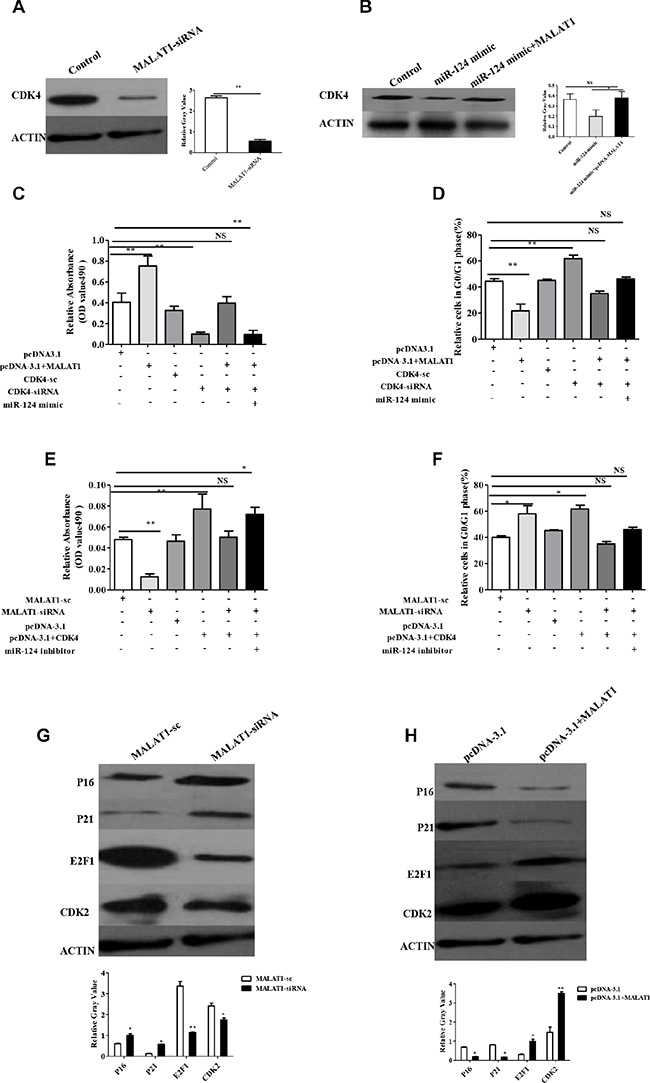 MALAT1 increased the expression of CDK4, a target of miR-124