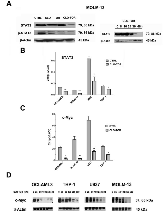 The CLO-TOR combination modulates STAT3 and c-Myc in AML cells
