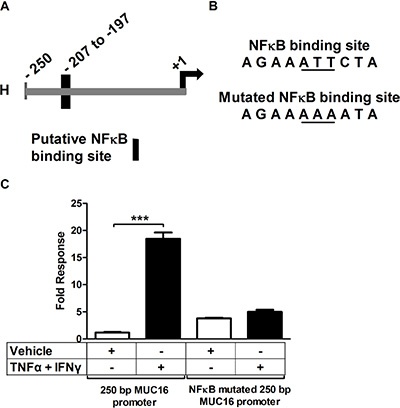 A conserved, consensus, NFκB binding site in the proximal MUC16 promoter accounts for much of the cytokine responsiveness