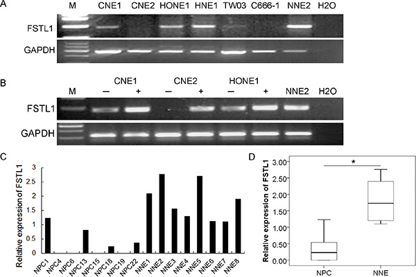 FSTL1 is downregulated in NPC cell lines and primary tumors