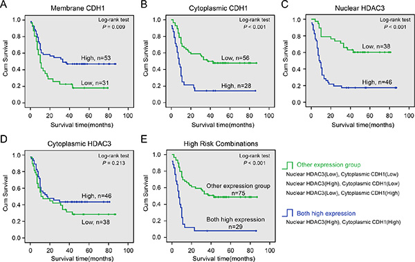 Associations between CDH1 and HDAC3 expression and survival