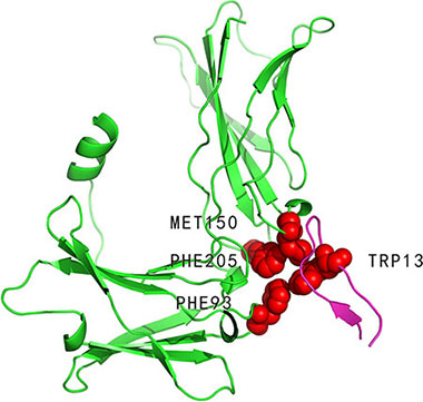 The performance of our model is measured by six metrics: accuracy (ACC), specificity (SPE), precision (PRE), recall (REC), MCC and F1 score. F1-score is the harmonic mean of the precision and recall, which is widely used to handle unbalanced data such as hot spot data. Table 2 illustrates the results of cross-validations. HEP achieved Accuracy = 0.73, Specificity = 0.70, Precisio n = 0.63, Recall = 0.77, F1 = 0.70, and MCC = 0.46. We can see that compared with HEP model, F1 score is quite low when we use all 108 features without feature selection. After feature selection, we got 3 significant features. We predict 48 of the hot spots correctly with 28 false positives. On the other hand, 64 of the non-hot spots are correctly classified with 14 false negatives.