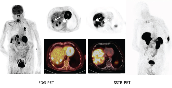 Interestingly, one patient (patient #17) had no detectable SSTR-expression in his biopsy sample taken from the primary tumor in the right bronchus consistent with SSTR-PET imaging, but showed high tracer binding in all metastases.