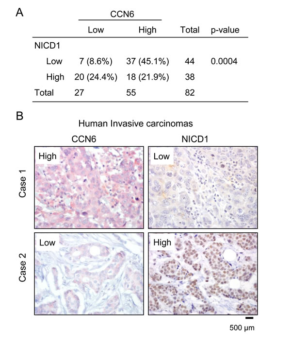 CCN6 protein is inversely correlated with NICD1 expression in human invasive breast carcinomas