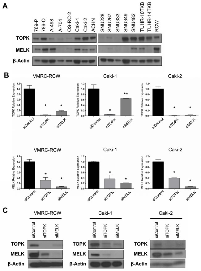 TOPK and MELK expression in kidney cancer cell lines