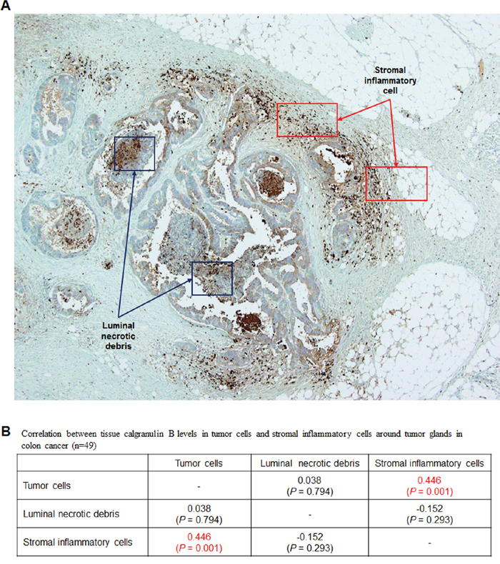 Calgranulin B levels in tumor tissue were correlated with the presence of stromal inflammatory cells around tumor glands