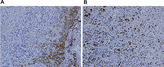 Figure 4: Immunohistochemical examination. (A) CD1a (+) (SP × 400) (B) CD68 (+) (SP × 400).