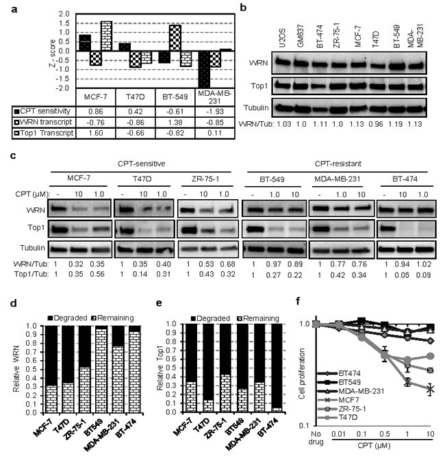 WRN degradation and CPT sensitivity in breast cancer cells