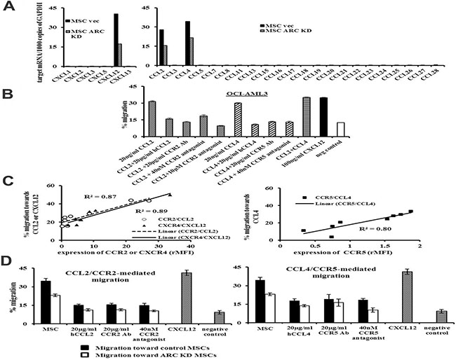 ARC regulates CXCL12, CCL2, and CCL4 expression in MSCs, supporting AML cell chemotaxis
