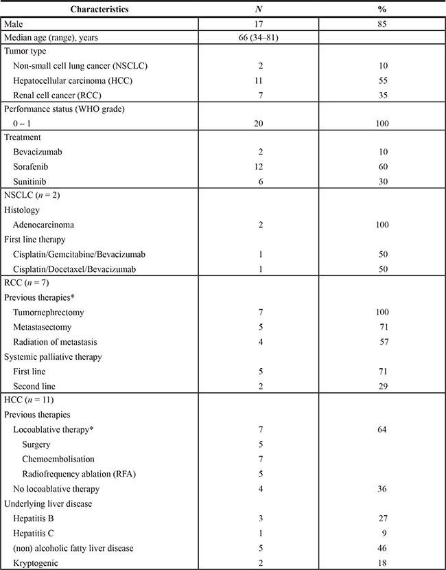 *The majority of HCC and RCC received different locoablative therapies prior to the start of antiangiogenic therapy.