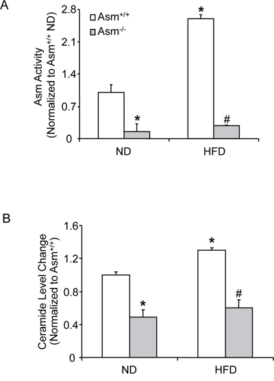 Mice lacking Asm gene attenuates the HFD-induced Asm activity, ceramide production and Nlrp3 inflammasome formation