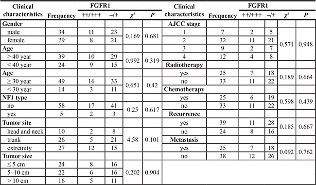 Table 3: Correlation of FGFR1 protein expression with clinicopathological characteristics in 63 MPNST patients