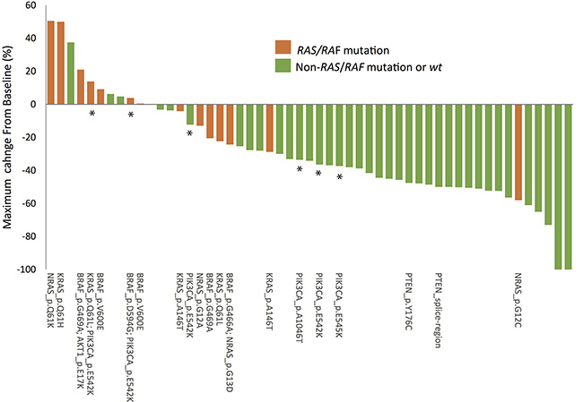 22. De Roock W, Claes B, Bernasconi D, De Schutter J, Biesmans B, Fountzilas G, Kalogeras KT, Kotoula V, Papamichael D, Laurent-Puig P, Penault-Llorca F, Rougier P, Vincenzi B, et al. Effects of KRAS, BRAF, NRAS, and PIK3CA mutations on the efficacy of cetuximab plus chemotherapy in chemotherapy-refractory metastatic colorectal cancer: a retrospective consortium analysis. The Lancet. Oncology. 2010; 11:753–762