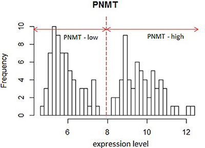 In conclusion, by combining aCGH with expression array analysis and validation studies, we identified PNMT as a candidate gene to distinguish malignant from benign PCC/PGL. This is the first demonstration of the association between PNMT downregulation and PCC/PGL malignancy in humans, and our findings identify PNMT as one of the most differentially expressed genes between malignant and benign tumors.