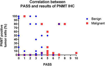 Use of PNMT as a diagnostic marker for malignancy could aid in the clinical management of PCC/PGL. IHC analysis of protein expression in FFPE samples is an effective and routine clinical diagnostic tool. Patients with clinically and histopathologically benign tumors at higher risk of malignancy based on low PNMT expression would benefit from frequent follow-ups, along with regular biochemical testing and imaging, to detect recurrent or persistent tumors. [48]. In light of the current practices, low PNMT expression with relation to catecholamine type might be associated with malignant behavior.