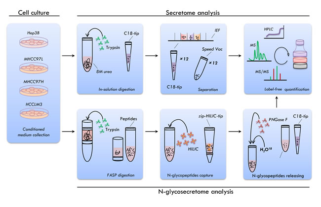 Workflow of the secretome and N-glycosecretome of HCC cell lines