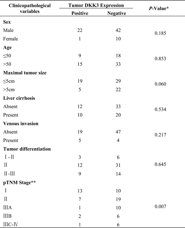 Table 1: The relationship between the clinical pathological features of HCC and DKK3.