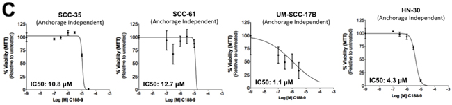 Table 2: Inhibition of constitutive pSTAT3/1 and anchorage independent growth of HNSCC cell lines by C188-9
