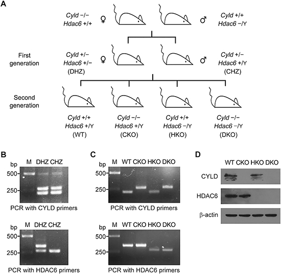 Generation and confirmation of Cyld/Hdac6 DKO mice