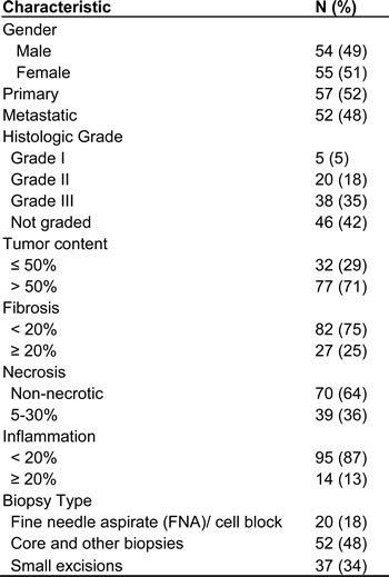 Table 1: Tumor characteristics for the clinical validation cohort (N = 109)