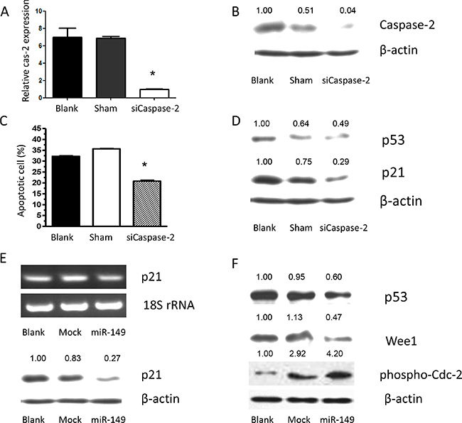 miR-149 downregulated caspase-2 and p53 expression in vitro
