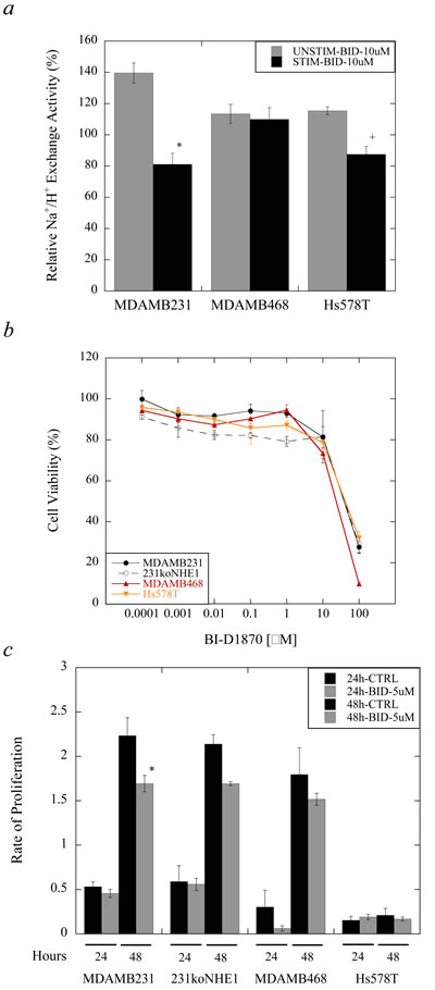 Effect of BI-D1870 on NHE1 activity and cell proliferation in triple-negative breast cancer cells