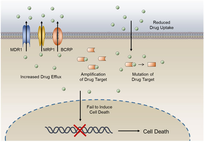 Development of drug resistance is an important factor in the failure of anticancer therapeutic treatments [1]. Such resistance results from a variety of factors including individual variations in patients and somatic cell genetic differences in tumors. The ability to evade medicinal drugs is intrinsic to cancer cells. Reasons for acquisition of anticancer drug resistance include enhanced expression of transporters that increases anticancer drugs efflux, alterations in drug metabolism, mutations of drug targets and the activation of survival or inactivation of downstream death signaling pathways (Figure 1) [1]. Studies on cancer drug resistance mechanisms have yielded valuable information on how to circumvent resistance to improve cancer chemotherapy [1-3].