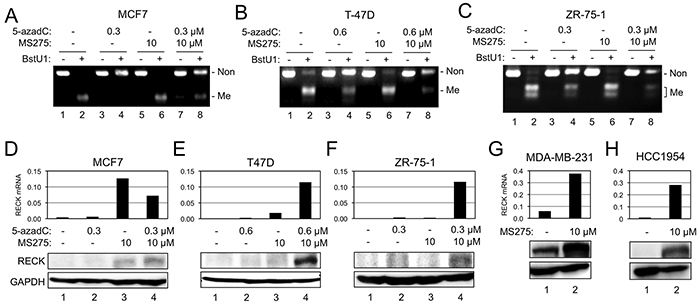 Effects of DNMT inhibitor and HDAC inhibitor on RECK expression