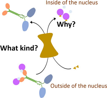 Figure 3: How KIFC1 is transported into the nucleus during interphase. In the interphase, KIFC1 is transported into the nucleus in interphase by importin alpha/beta and Ran-GTPase through interactions with undefined nucleoporins complexes [18]. The linkages between this transportation of KIFC1 and its function in cancer cells are still missing.