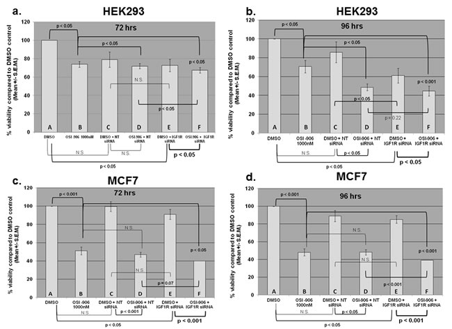 IGF-1R siRNA decreases the viability of HEK293 and MCF7 cells alone and in combination with OSI-906