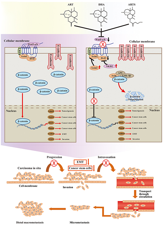 Suppression of ART, DHA, and ARTS in proliferation and metastasis could partially depend on Wnt/β-catenin pathway inactivation