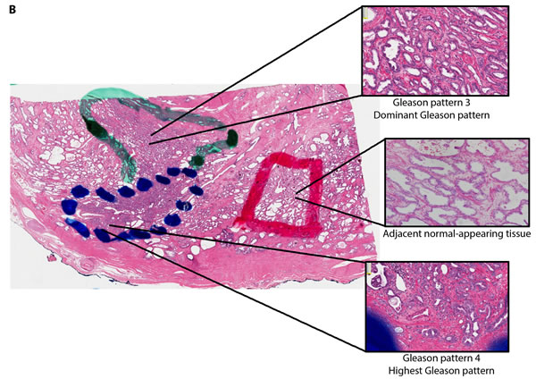 Quantitative gene expression was measured in primary and highest Gleason pattern tumor regions as well as adjacent normal-appearing tissue from RP specimens
