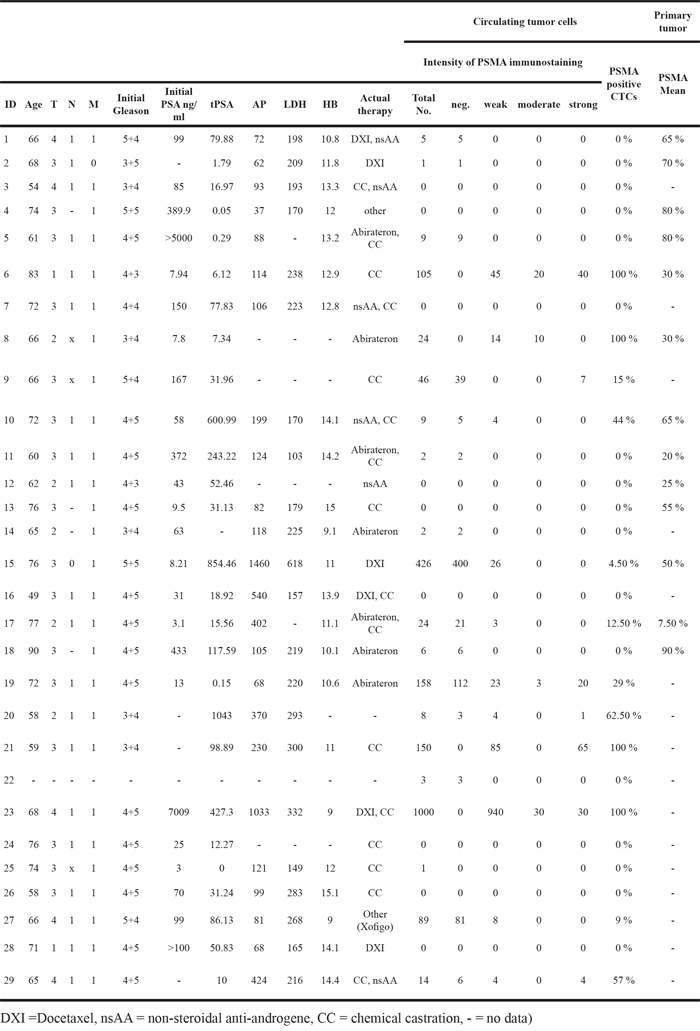 Table 2: Detailed patient characteristics and CTC / PSMA results