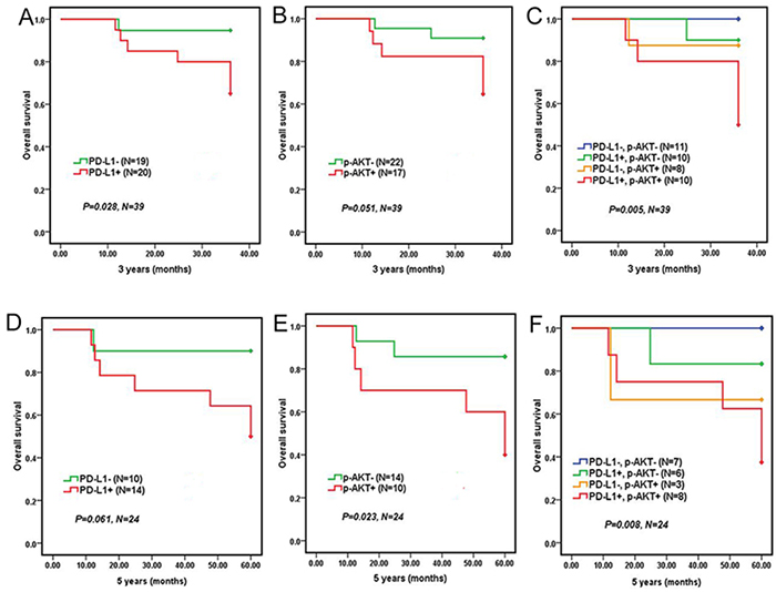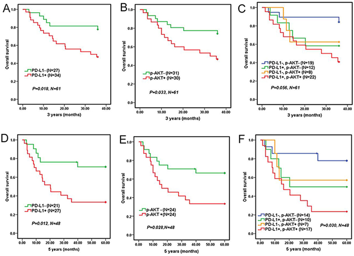 In short, PD-L1 expression was correlated with p-AKT, and the co-expression of PD-L1 and p-AKT would result in a poorer prognosis compared with single positive or both negative expression of PD-L1 and p-AKT in DLBCL. Even PD-L1 and p-AKT were the two independent prognostic factors negatively impacting survival.