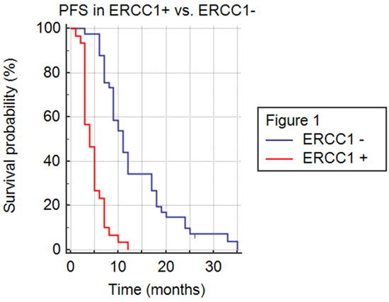Figure 1: Progression free survival (PFS) in ERCC1+ versus ERCC1- population.