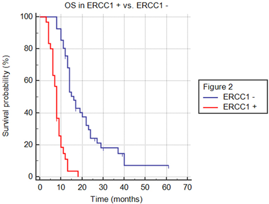 Figure 2: Overall survival (OS) in ERCC1+ versus ERCC1- population.