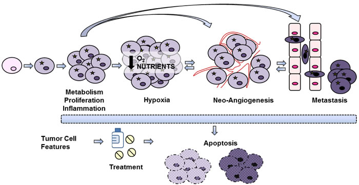 Figure 2: Tumor processes. Schematic representation of different processes involved in tumor growth and progression, that can be visualized by using imaging techniques.